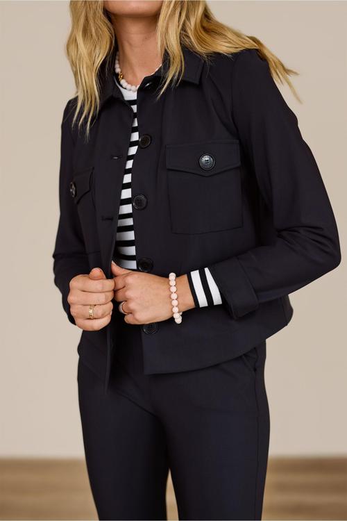 De Claire bonded jacket van Studio Anneloes is een musthave uit onze Essentials collectie. Dit zwarte jasje, gemaakt van Bonded Travelstof, combineert comfort met duurzaamheid. De regular fit, klepzakken op de borst, een strakke knoopsluiting en lange mouwen zorgen voor een veelzijdige en tijdloze stijl die geschikt is voor elke gelegenheid.