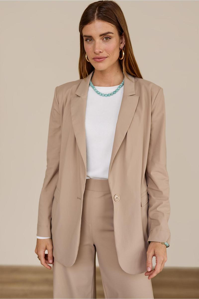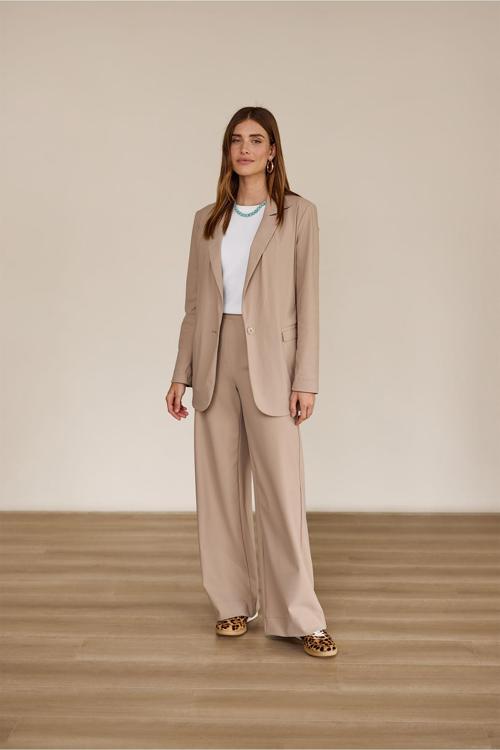 De Fran blazer van Studio Anneloes tilt jouw look naar een hoger niveau. Deze blazer in de kleur Latte is gemaakt van stevige Heavy Travelstof en heeft een regular fit met een nonchalante boyfriend twist. Het is de perfecte combinatie van structuur en comfort. Stijlvol en praktisch in één item.