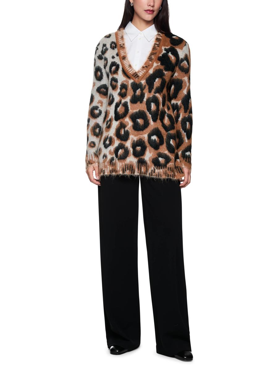 De luxe trui met trendy luipaarddessin combineert stijl en comfort. De losse pasvorm en de zachte materiaalmix met alpaca en mohair zorgen voor een aangenaam draagcomfort. Met zijn V-hals, harige structuur en moderne kleuren is hij een echt fashion statement. De trui wordt in Duitsland gebreid en ook afgewerkt. De verdere verwerking van de afzonderlijke delen vindt plaats in Europese partnerbedrijven. Het model is dus ‘Knitted in Germany’.