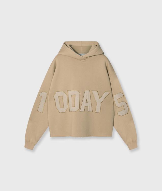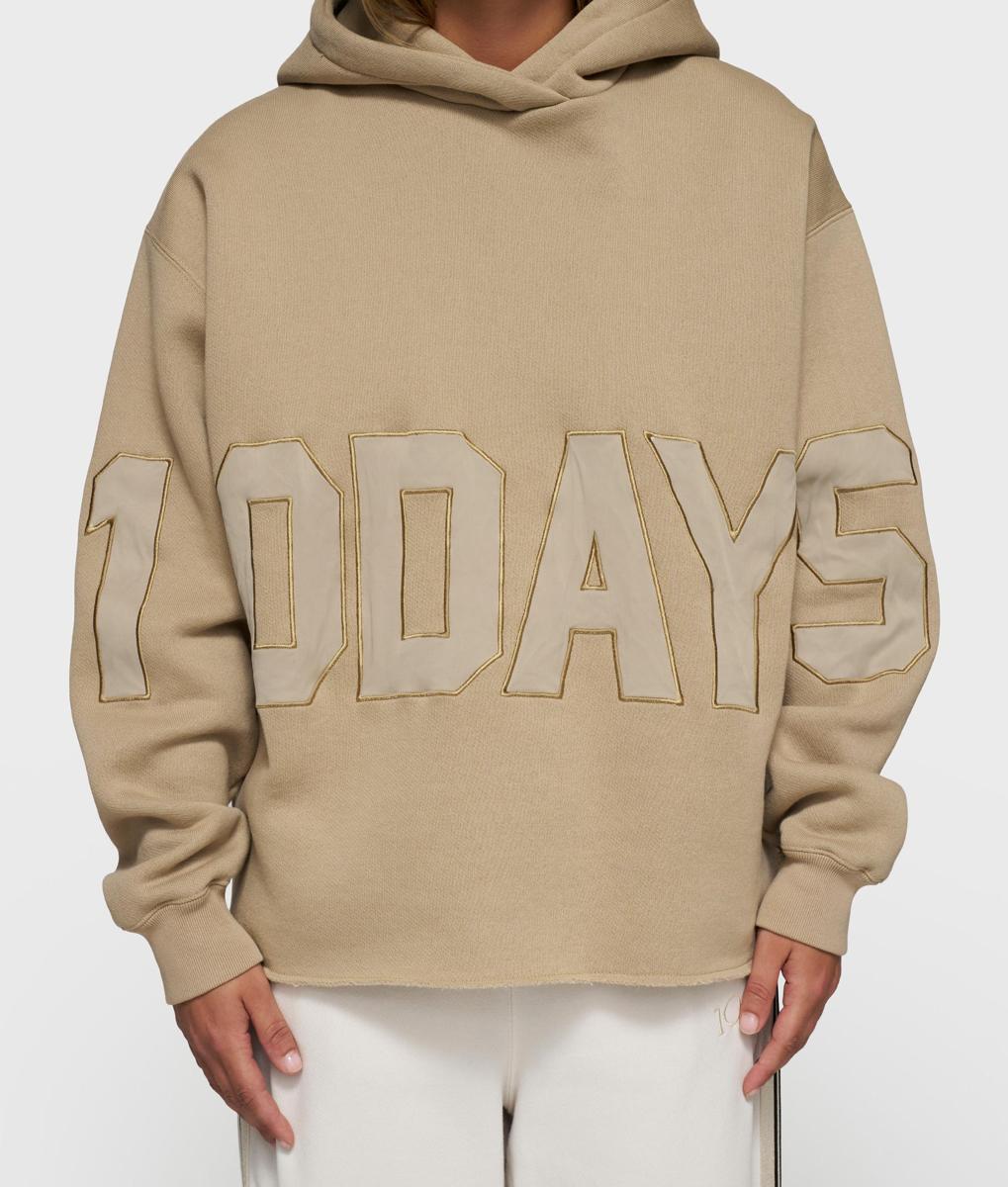 Relaxed fit statement hoodie, gemaakt van dik geborsteld fleece. De sweater is voorzien van een grote 10DAYS logo patch op de mouwen en body aan de voorzijde, een capuchon, ribgebreide manchetten en een raw edge zoom.