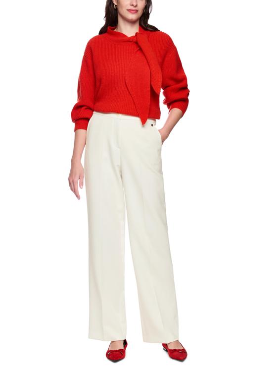 De WUKARI-broek van viscose en gerecycled polyester heeft een modern design. De wijde pasvorm met hoge taille en elegante vouwen zorgt voor een stijlvol silhouet. Schuine steekzakken bieden praktische details, terwijl de knoop en rits een klassieke afwerking vormen.