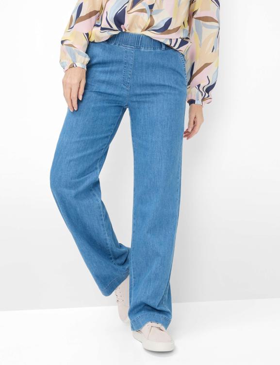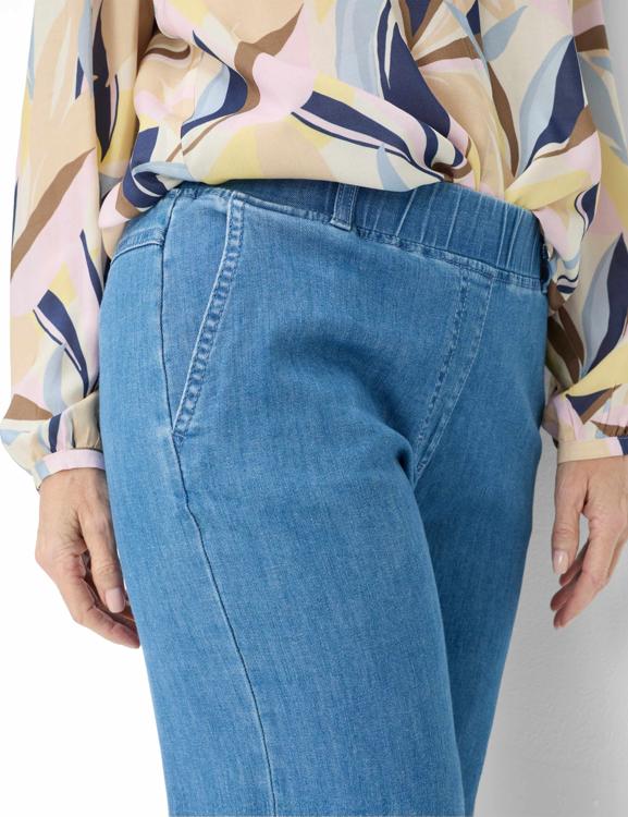 Modern, casual, smart. De Marlene-broek in Style PAM FLARED herdefinieert ontspannen chic en groeit snel uit tot een must-have voor een zelfverzekerde denimlook. Met zijn karakteristieke wijde vorm creëert hij een vloeiende, vrouwelijke silhouet, dat door de hoge taille optisch wordt verlengd, terwijl de nauwsluitende pasvorm bij de heupen elegant overgaat in de uitlopende pijp. De innovatieve elastische tailleband met fake-sluiting zorgt voor een perfecte pasvorm en gemakkelijk aantrekken, zonder te knellen.