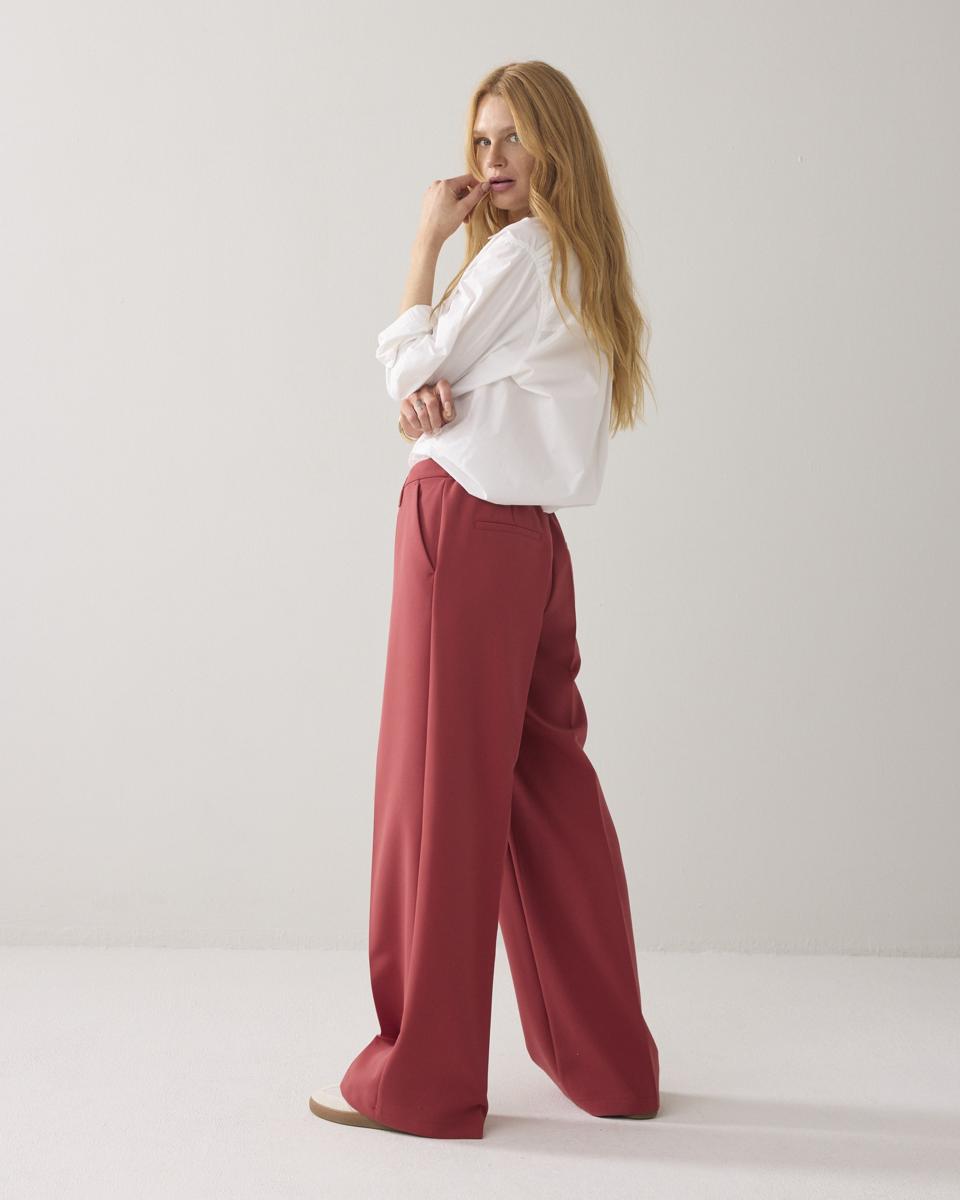 Summums bestseller foambroek met wijde pijpen. De broek heeft een elastische tailleband achter en steekzakken voor en strookzakken achter.