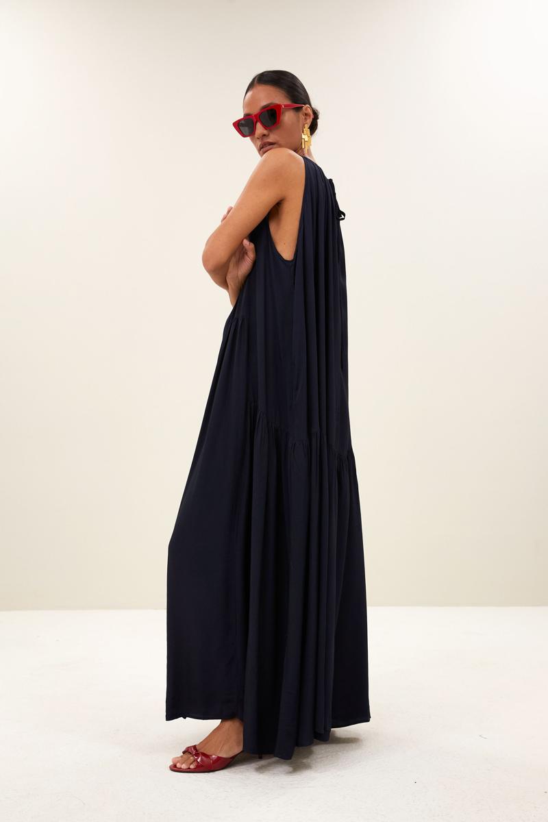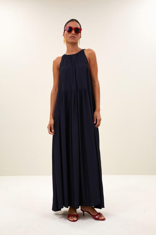 De peggy twill dress combineert een casual fit met een losvallende pasvorm voor optimaal draagcomfort. Deze mouwloze lange jurk heeft een stijlvolle ronde halslijn en handige zijzakken, perfect voor een ontspannen en chique look die moeiteloos met je meebeweegt. Ideaal om je zelfverzekerd en comfortabel te voelen, waar je ook naartoe gaat.