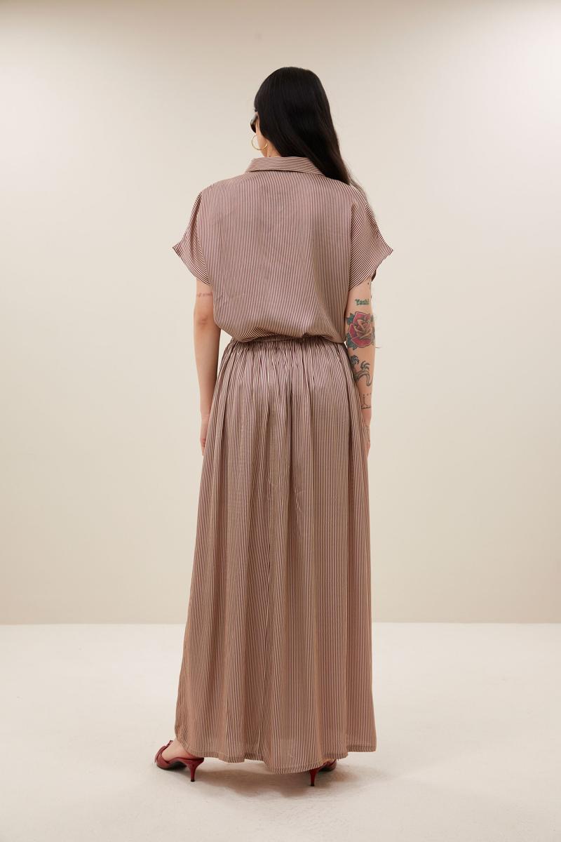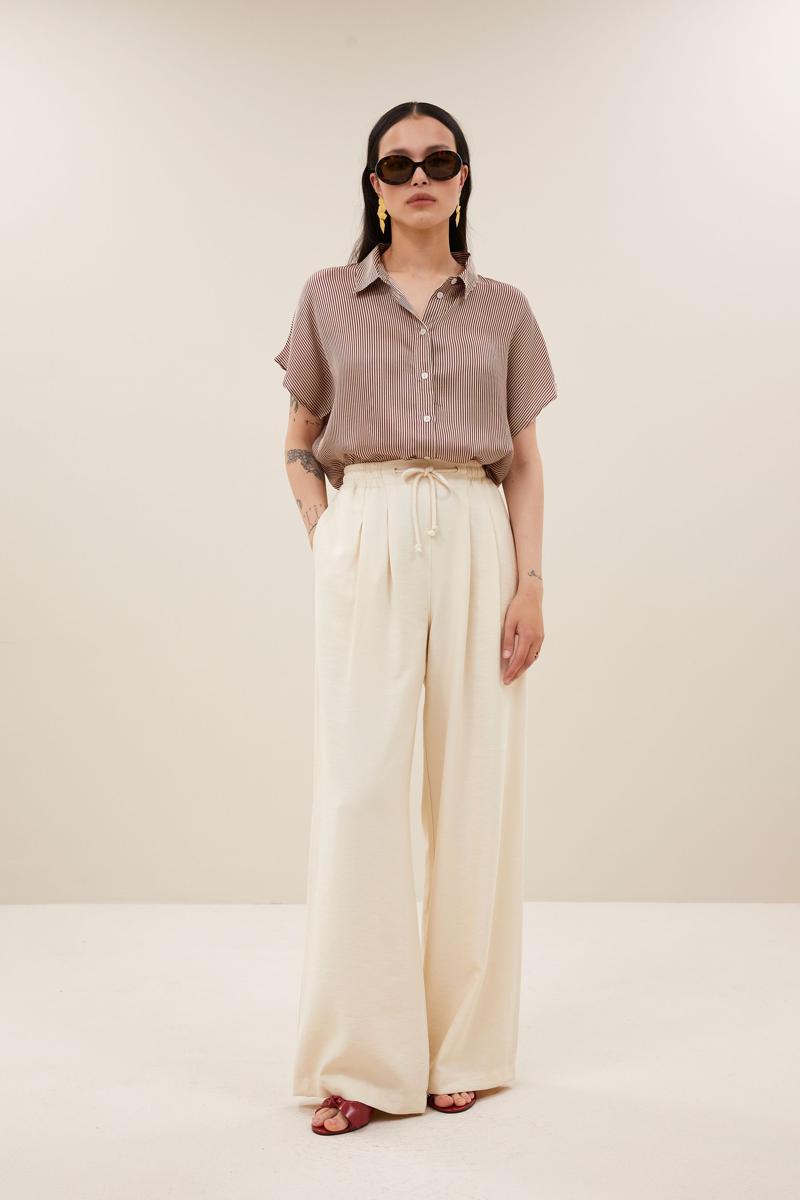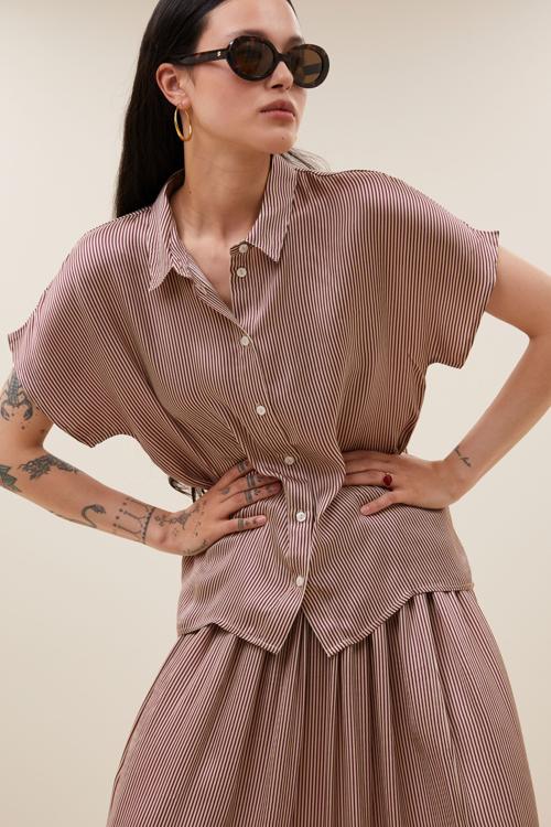 De karly viscose stripe blouse, een tijdloze klassieker in een stijlvolle gestreepte print. De losvallende pasvorm en korte mouwen zorgen voor een comfortabel en casual look, perfect voor elke dag. Met een knoopsluiting en een elegante kraag is deze blouse een veelzijdige aanvulling op je garderobe. Combineer de blouse met de benji viscose pants voor de complete look!