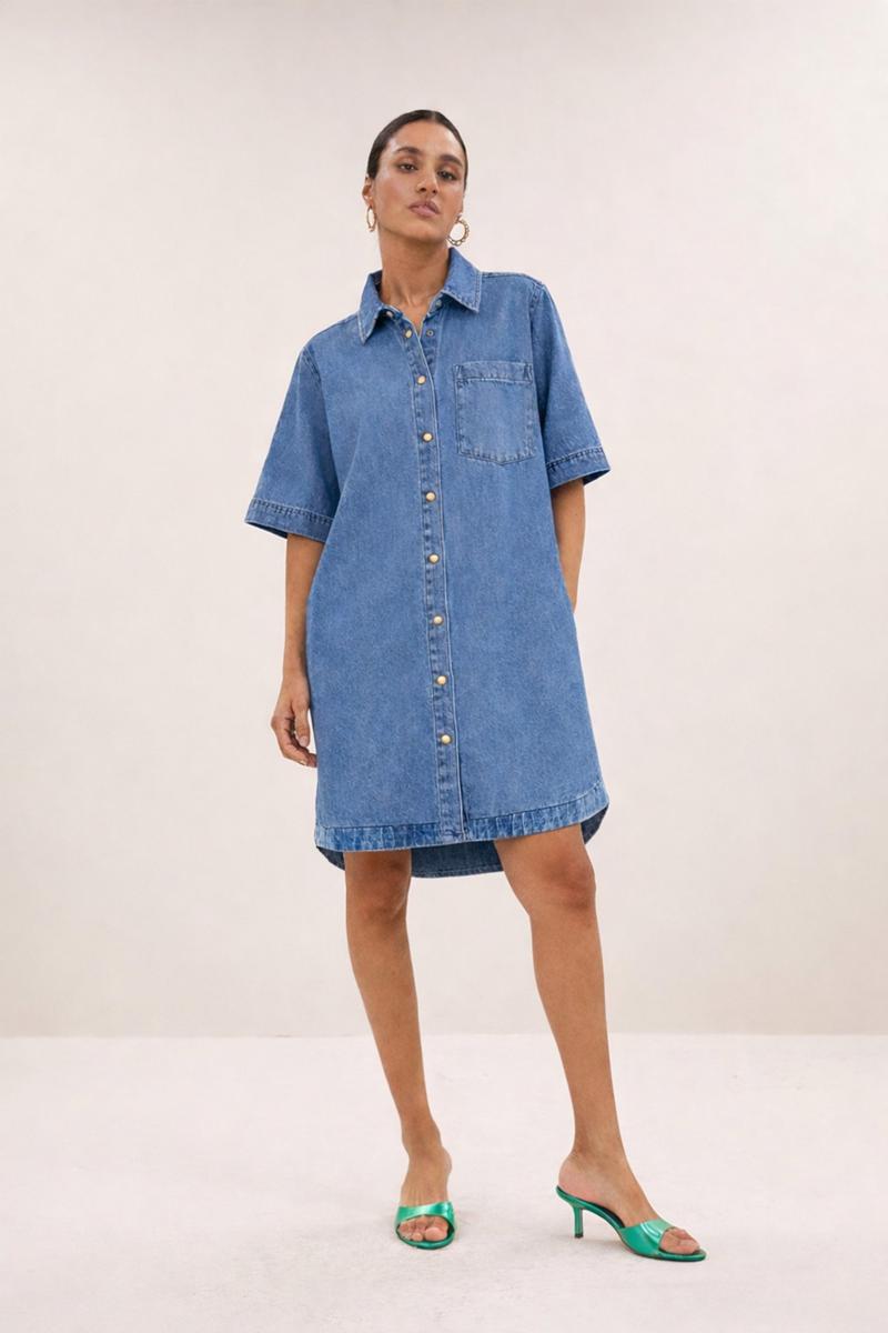 De Lexia denim dress is een casual jurk met een rechte pasvorm en korte mouwen, ideaal voor een ontspannen en veelzijdige look. De jurk heeft een comfortabele knoopsluiting en een praktische steekzak aan de voorkant. Perfect voor dagelijks gebruik, combineer je stijl moeiteloos met deze tijdloze denim jurk.