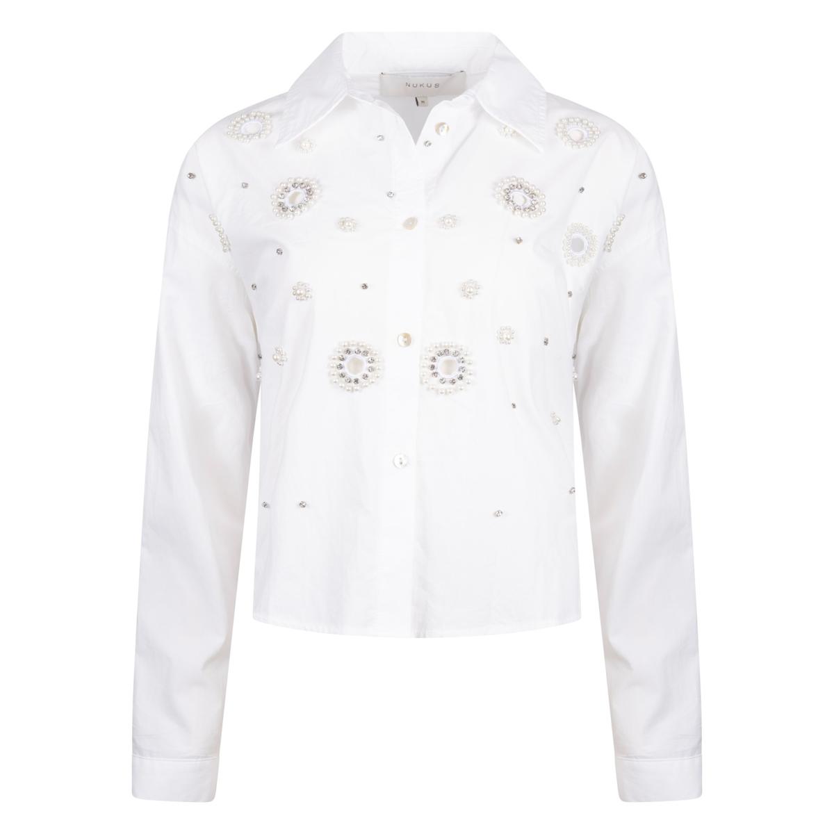 De Noor blouse pearl van 100% katoen heeft een op maat gemaakte pasvorm en subtiele pareldetails die de blouse een elegante eyecatcher maken. De offwhite kleur geeft een frisse uitstraling aan de blouse, perfect voor het voorjaar