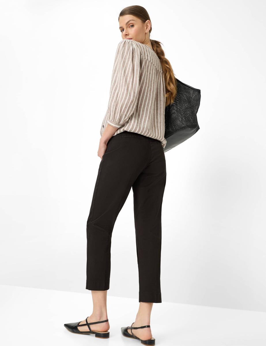 Een tijdloos essentieel item voor het komende seizoen dat elegantie en draagcomfort perfect combineert: de chino in STYLE.MARA S. Deze stijlvolle damesbroek overtuigt moderne vrouwen met haar klassieke, elegante uitstraling en past moeiteloos in verfijnde outfits. De pasvorm kenmerkt zich door een comfortabele regular fit met een toelopende, verkorte pijp en een normale taillehoogte.