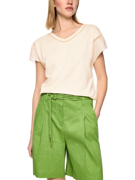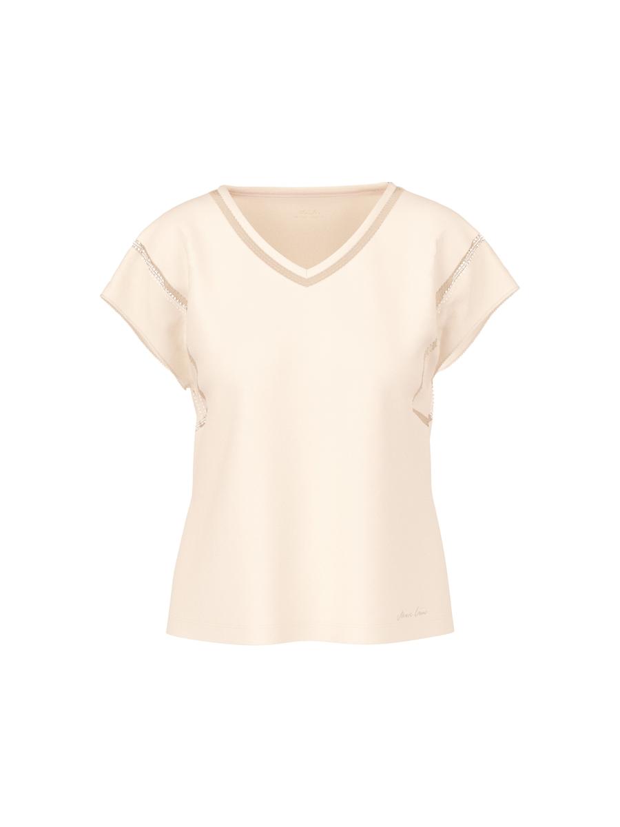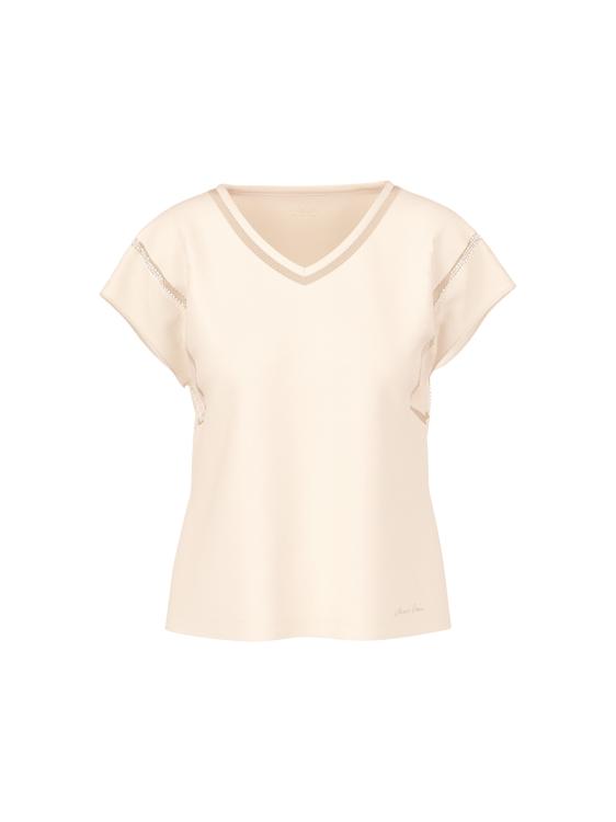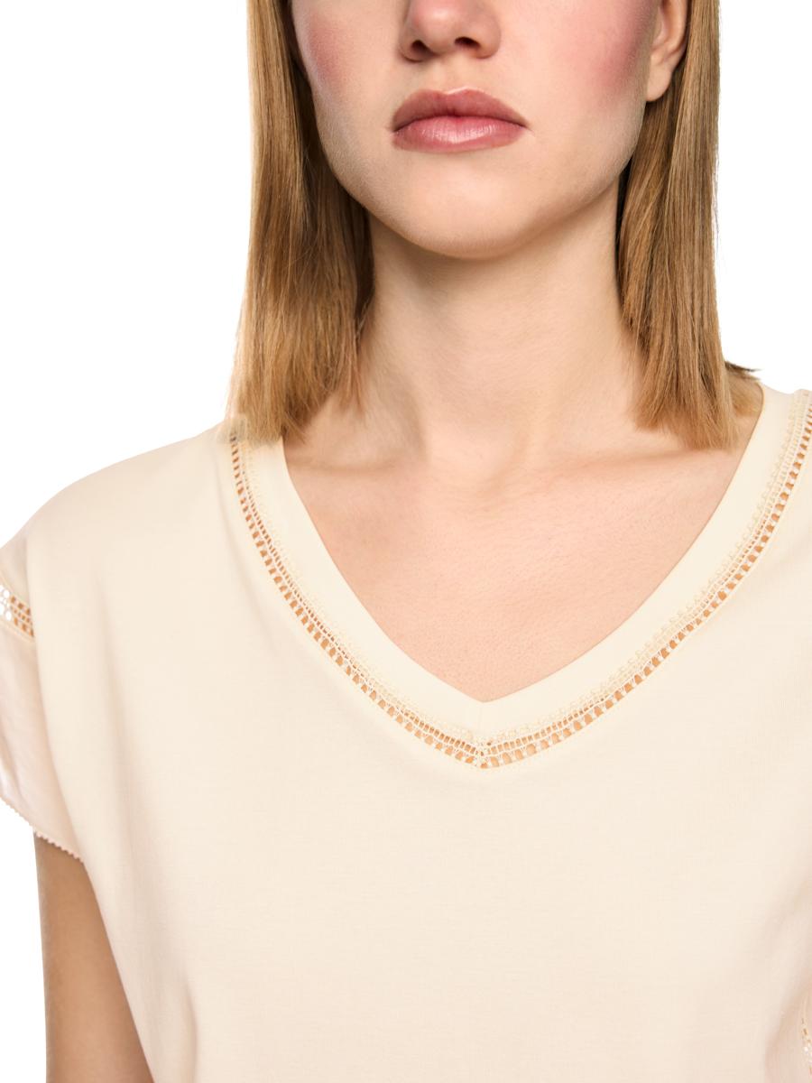 Comfortabel shirt van zacht stretchkatoen met fijne gaatjespatroondetails en delicate katoenen voile-afwerkingen aan de mouwen. De vrouwelijke V-hals zorgt voor een elegant accent. De snit valt losjes en omspeelt het figuur.