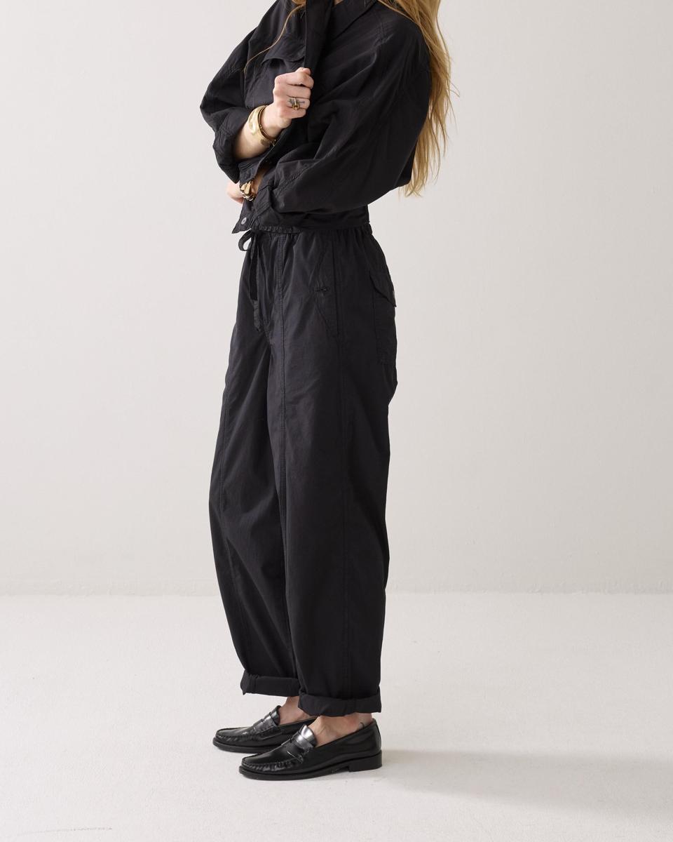 Broek in een breezy, lichtgewicht katoen met een relaxte, baggy straight fit. Dit model is een evolutie van de klassieke cargo: net zo stoer, maar zonder opgestikte zakken aan de zijkant.